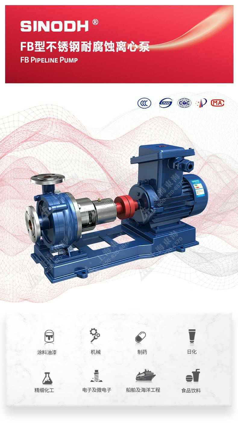 FB型不锈钢单级单吸悬臂式耐腐蚀离心泵,为九游网站网页版入口-九游(中国)自主研发生产。本系列产品适用于输送不含固体颗粒,有腐蚀性液体。被输送介质温度为-20℃~200℃,泵的进口压力不能大于0.2MPa,广泛用于石油、化工、冶金、合成纤维、制药、食品、酿造等工业部门,也可供工矿、企业及城市供水、排水之用。