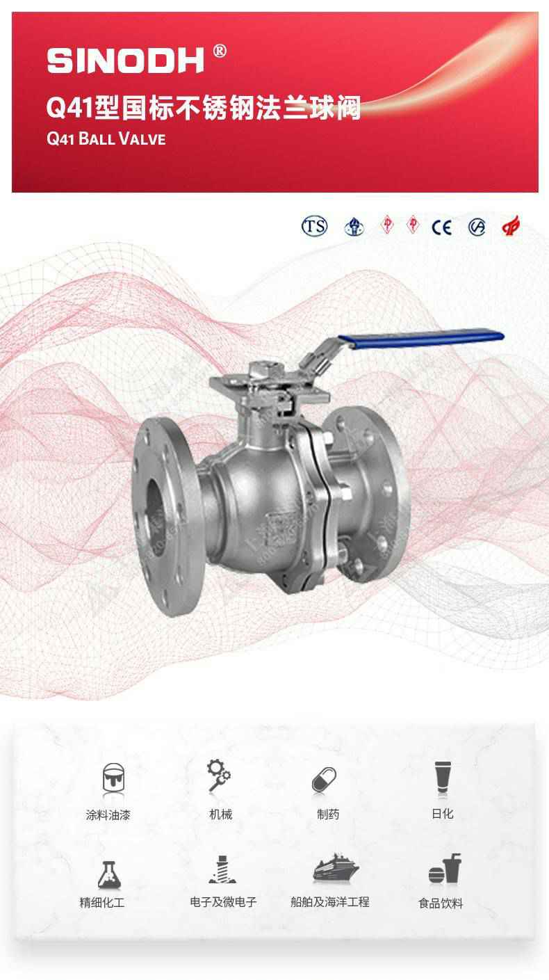 Q41型国标不锈钢法兰球阀,为九游网站网页版入口-九游(中国)自主研发生产。本产品设计制造标准符合GB/T12237、GB/T 1 2224标准该产品的球体在介质压力作用下,球体能产生-定的位移并紧压在出口端的密封面上,保证出口端密封。适用于水、溶剂、酸和天然气等-般工业介质,也适用于工况恶劣的介质,如氧气、过氧化氢、甲烷和乙烯等介质。